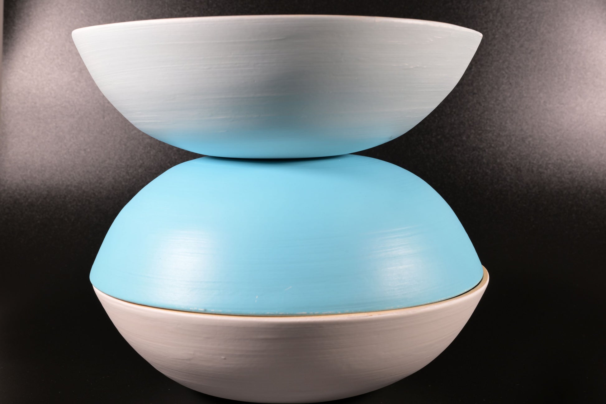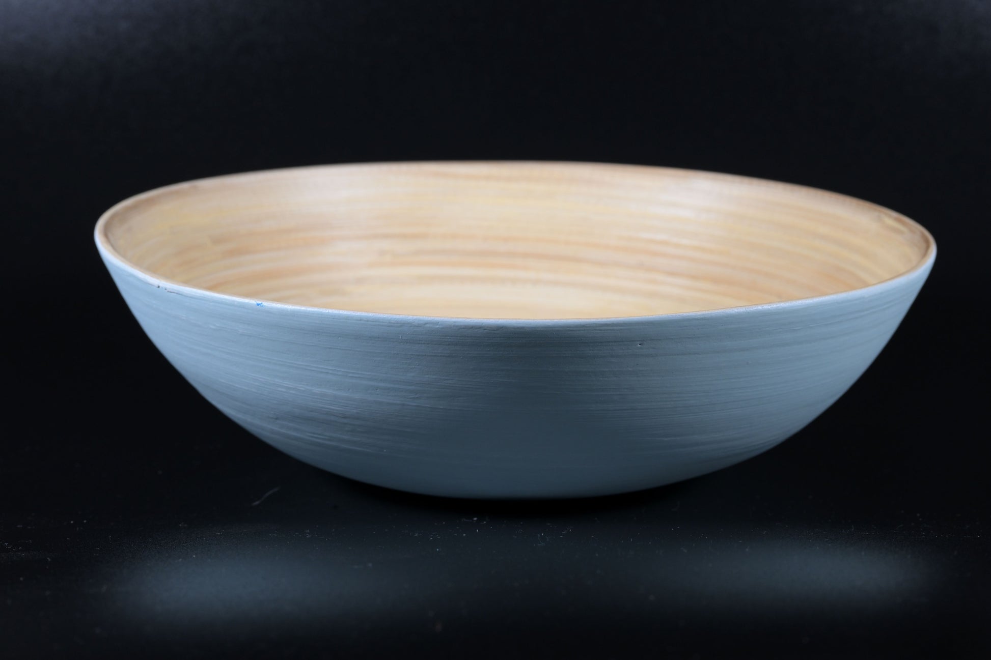 These spun bamboo bowls are about 20cm diameter and about 7cm deep